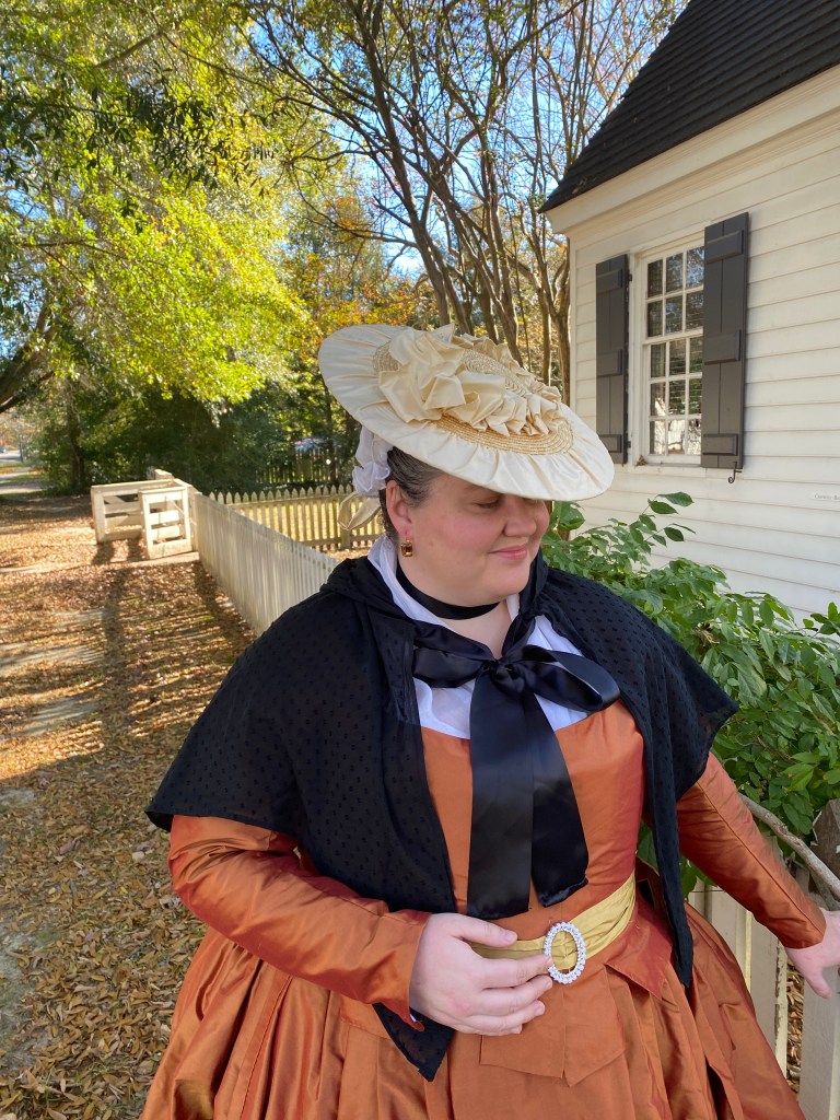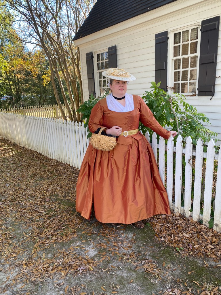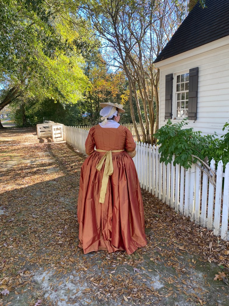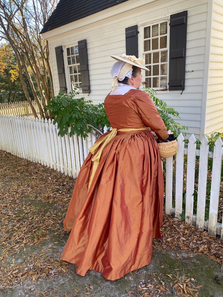 I got to wear this for the first time while staying in Colonial Williamsburg in amazing fall weather – exactly what this gown was made for!