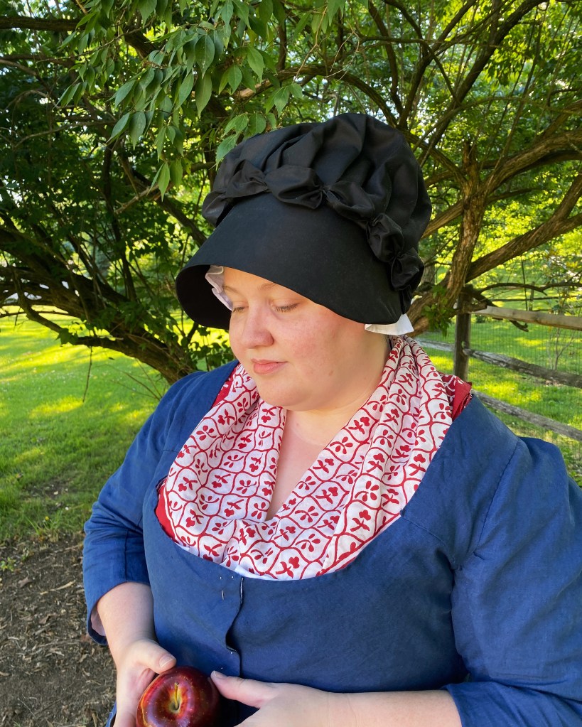 Patterns used: Scroop and Virgil’s Fine Goods Amalia Jacket (view A), 1780’s black silk bonnet (pattern from The American Duchess guide to 18th century beauty).